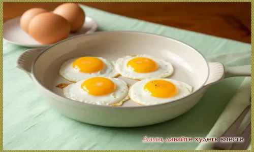 Яичница-глазунья, приготовленная без жира в сковороде с керамическим покрытием - на завтрак.