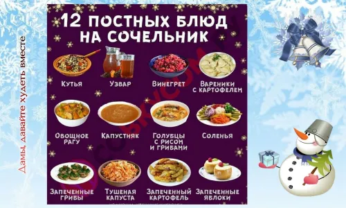 Предлагаю вам ознакомиться и с таким вариантом 12-ти постных блюд, который может быть хорошей точкой в питании человека, который целиком придерживался постного питания в дни Рождественского поста: