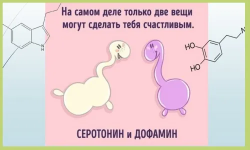 Картинкой-лейтмотивом своей статьи я сделала забавную и веселую картинку о серотонине и дофамине, гормонов удовольствия. Об этих веселых ребятах поговорим завтра!