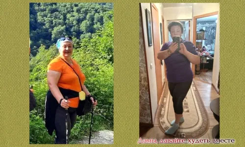Второе фото (это сейчас) с весом 105 кг. Первое с весом почти 120 кг. (Я в оранжевой футболке, одиночного фото не нашла).