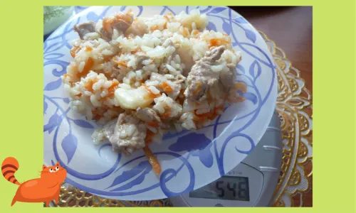 Вот такой плов с рисом я приготовила 1 сентября на обед. Конечно, он у меня не классический: я НИКОГДА не обжариваю овощи, но получается он у меня тоже неплохо. Может, внешне мой плов похож на кашу с мясом, но у меня, в отличие от просто каши, в нём и чесночок (такой аромат придает - чудо!) и МНОГО-МНОГО лука и моркови, перца, рис не слипшийся, а зернышко к зернышку, много мяса. В общем, я это называю пловом (хозяин - барин). Вот и источники железа и меди в нашем с мужем питании: