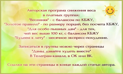 Все рационы, которые я предлагаю для похудения, даже по размеру порций в группе "Золотое правило похудения", СБАЛАНСИРОВАНЫ по пропорциям нутриентов и ЧАСТАЯ ЗАМЕНА предлагаемых блюд ведет к нарушению ЭНЕРГЕТИЧЕСКОГО и НУТРИЕНТНОГО качества питания. Размер порции при этом соблюдается, а вот ЭНЕРГЕТИЧЕСКАЯ СОСТАВЛЯЮЩАЯ превышает положенную для похудения.