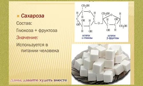 Сахароза является источником энергии для организма. Она быстро расщепляется в пищеварительном тракте на глюкозу и фруктозу, легко проникает в кровь. Сахароза необходима для образования жира, гликогена, белково-углеродных соединений.