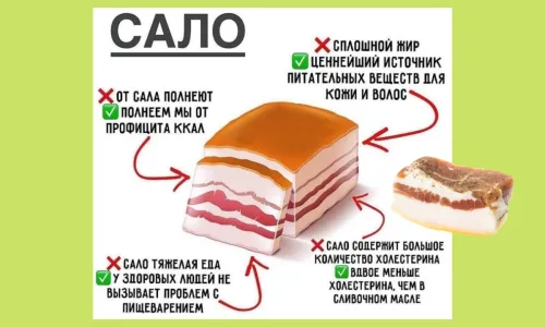Я хочу напомнить и такой продукт, как сало, источник животного жира.