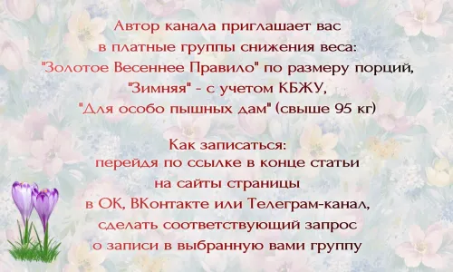 Совсем неожиданно получилось у меня ТАКОЕ вступление, но мне хотелось бы лишний раз донести до вас, милые дамы, что то, что возможно молодости, невозможно для нас, дам серебряного возраста. Похудеть можно и в нашем возрасте, но НЕ СПЕША. Не спешите! Не гонитесь за чужими результатами, а упор делайте только на свои усилия. Хорошо?