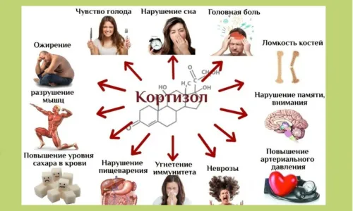 Постоянный стресс увеличивает выработку кортизола, гормона, который непосредственно влияет на наш аппетит и зачастую это повышение такового. И именно кортизол способствует накоплению висцерального жира, то есть жира в области талии и живота. А висцеральный жир - это очень большая проблема, которая тянет за собой сахарный диабет, высокий холестерин, а это проблемы с сосудами и сердечно-сосудистой системой и так далее, и так далее...