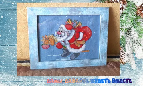 Но этот, новогодний вышитый сюжет, я взяла из интернета, сама подбирала нитки, канву, схему под лупой рассматривала - в общем, попотела над картинкой, но она того стоила!