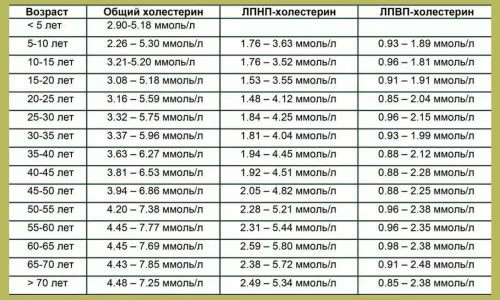 Интернет заботливо подкинул и таблицы с нужной информацией по холестерину, а также и о значениях липопротеинов низкой и высокой плотности (ЛПНП и ЛПВП) и, кстати, совершенно не противоречит данным общего холестерина, приведенным выше: