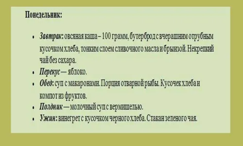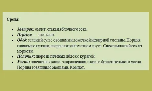 Из энциклопедии я перепечатала ПРИМЕРНОЕ меню, на основе которого можно составить собственный рацион питания.