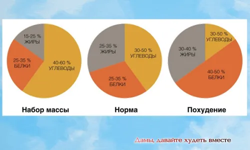 При переходе на питание ДЛЯ похудения нужно ориентироваться на такой баланс БЖУ, который значительно отличается от того, который является НОРМОЙ для нехудеющего человека.