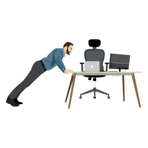 - Отжимания от стола: Упритесь руками в край рабочего стола (убедитесь, что он устойчив!) и сделайте 5-10 отжиманий. Отлично прорабатывает грудные мышцы и трицепсы.