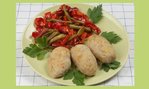 Мясные паровые котлеты с овощным гарниром из свежих или паровых овощей,
