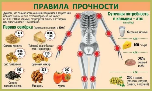 В рацион надо включать кунжутное семя, непосредственно тхину и тхину в любых ее вариациях (тхинную халву, хумус, тахинная паста и так далее), яйца, сыр и не просто сыр, а сыр Пармезан, например, в рационе должен быть и плавленый сыр, в том числе, финики, тофу, миндаль и другие продукты, содержащие эти необходимые костям минералы.