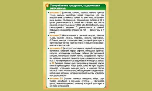 Теперь рассматриваем картинку с продуктами, усиливающими прочность костей: