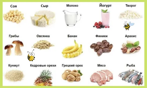 Конечно, невозможно вместить в одну картинку всё, что содержит нужную нам аминокислоту. Добавлю ещё шоколадное мороженое и какао с молоком с утра! Вкусно и полезно!