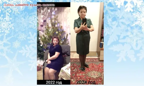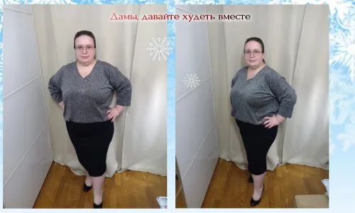 Здравствуйте, уважаемые коллеги! Хочу тоже поделиться с Вами своими успехами. На фото я осенью 2023 года и сейчас, в конце нашего новогоднего марафона. За год я похудела на 22 кг, за этот марафон ушли 5.2 кг.