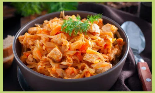 Сто раз испытанный рецепт для похудения: вкусный и ненадоедливый - это тушеная капуста с куриным филе